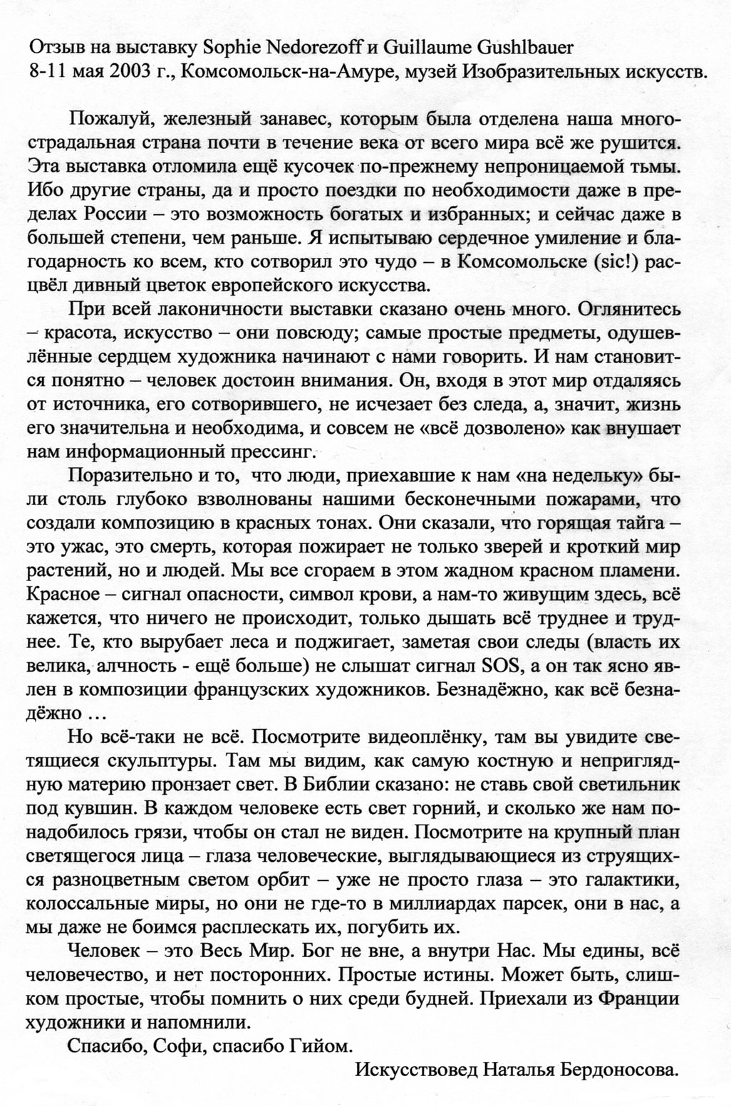 Article sur l'exposition de Sophie NÉDORÉZOFF et