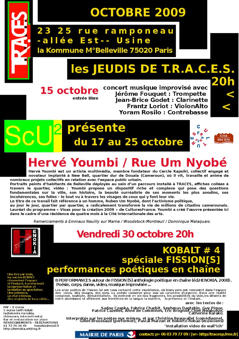 les jeudis de T.R.A.C.E.S. <<�>>> Jeudi 15 octobre 2Oh concert musique improvis�