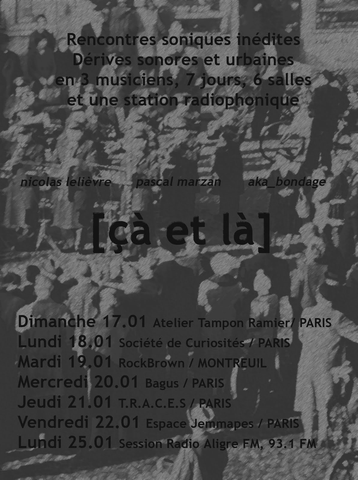 <.......... ��.......... & l�..................> Du 16 au 25 janvier 2010, Pascal Marzan, Nicolas Leli�vre et aka_bondage donneront une s�rie de rencontres musicales in�dites / concerts-nomades � Paris/RP. Plut�t